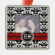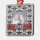 Ornamento de fotos de bodas en damasco blanco y negro con tu preciosa foto enmarcada con bandas negras y blancas adamascadas y tus iniciales en círculo.