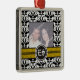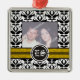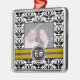 Ornamento de fotos de bodas en damasco blanco y negro con tu preciosa foto enmarcada con bandas negras y amarillas en blanco y negro y tus iniciales en círculo.