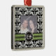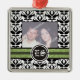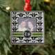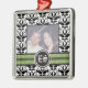 Ornamento de fotos de bodas en damasco blanco y negro con tu preciosa foto enmarcada con bandas negras y blancas adamascadas y tus iniciales en círculo.