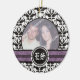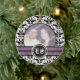 Ornamento de fotos de bodas en damasco blanco y negro con tu preciosa foto enmarcada con bandas negras y blancas adamascadas y tus iniciales en círculo.