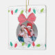 Celebra tus recuerdos navideños favoritos con este adorno navideño personalizado con una foto enmarcada por una alegre cadena de luces en rojo, verde y verde azulado. Con un audaz arco rosado y un año de personalizable, este adorno es un bigote festivo para tu árbol o un regalo para los seres queridos. Hecho de cerámica duradera con un acabado brillante, añade un toque de color y alegría a su decoración estacional año tras año.