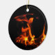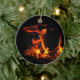 Este adorno vacacional representa la energía del fuego en una estufa de leña. Las llamas naranja, dorada y amarilla aparecen como personajes de baile alegres. Están despegados por un fondo negro. Excelente los Navidades o festividades de Halloween, o en cualquier época del año.