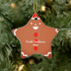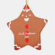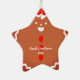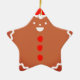 Hombre de pan de jengibre Navidades con forma de estrella adorno de árbol de vacaciones para panaderos o amantes de galletas. Feliz hombre de pan de jengibre sonriente con sofás punteros de canela roja y esquiva esquiva blanca.