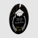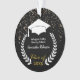 Regalo de ornamento de graduación para ese grado especial de secundaria o universitario con texto frontal y posterior personalizado. Imagen de una tapa de grad blanco y corona de laurel impresa en acrílico robusto. Acentuado con confetti de oro falso. Los colores rojo, azul y de otras capas también están disponibles en este mismo diseño