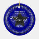 Personalice este adorno de celebración de graduación de clase con su nombre y año de graduación. Estos hacen grandes regalos de graduación. Con un marco circular de puntos y un fondo estelar, estarás creando un aguijón que los graduados apreciarán por toda una vida.