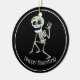 Este ornamento cerámico de porcelana se muestra en forma redondeada con una huella de arte esquelética de Halloween. Personalizar este artículo o compra tal cual.