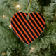 Este ornamento cerámico de porcelana se muestra en forma de corazón con franjas de Halloween de colores negros y naranjas. Personalizar este artículo o compra tal cual.