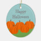 Ornamento de Halloween del divertido y caprichoso parche de calabaza con un encantador grupo de calabazas encantadoras. Con un ambiente de granja, este adorable adorno le dará un toque de Halloween y otoño a la decoración, o se lo puede regalar como un placer maravilloso. Fácil de personalizar, simplemente añada el texto personalizado de su elección. Haga clic en el botón "Personalizar" para cambiar fuentes, colores de texto o agregar o quitar texto.