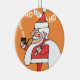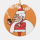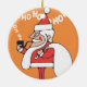 Un Santa suave sopla "Ho Ho Ho" de su tubo.