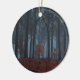 Un puesto de árboles en un día de invierno abarrotado. Los árboles altos son vacíos y sin hojas, pero los saplings de abajo aún tienen sus hojas marrones. Las hojas todavía aferradas y caídas en tonos casi rosados ofrecen un contraste con los baúles oscuros y la neblina azul niebla arriba. Este colgado de hojas muertas a lo largo del invierno se llama "marcescence", y es especialmente común en los robles jóvenes como estos.
