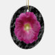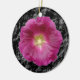 Este adorno presenta una hermosa fotografía de una flor morada del Hollyhock. Esta foto fue tomada usando macrofotografía para obtener un resultado muy colorido y detallado. El color profundo de los pétalos contrastado con el centro amarillo pálido de la flor hace de este Hollyhock una verdadera belleza natural. La imagen está en la parte delantera y trasera del adorno.