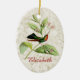 El ornamento tiene el ilustracion vintage de un colibrí gavillero (insignes de Panterpe). Un colibrí verde y azul colorido, con la garganta rojo-naranja brillante en una planta de adelfa rosa, con un fondo de textura de mármol dorre claro. Agregue nombre y fecha; haga clic en "Personalizar" para cambiar el tipo de letra y el color del texto. Opciones de texto delante y atrás, o eliminar texto para una adición elegante inspirada en la naturaleza a cualquier árbol de Navidad. Perfecto para todas las ocasiones para los amantes del colibrí. ...