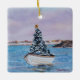Acuarela original de un barco de vela con un árbol de Navidad en él. Ideal para la casita de campo. Pintura acuática original de Debra Birtwell © 2022 Debra Birtwell