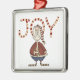 Santa Claus conserva el adorno festivo con un texto de franja de caña de caramelo que dice "JOY".
