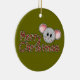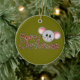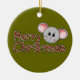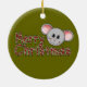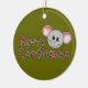 Un pequeño texto rayado de ratoncito gris y caña de caramelo rojo y verde que dice "Feliz Navidad" en un adorno feriado de sake que puedes cambiar la forma de antes de pedir.