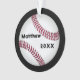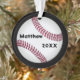 Ornamento de béisbol para personalizar con texto y foto. Color negro, con imagen de béisbol en la parte delantera, y nombre y año en texto negro impreso. Añade su foto para cubrir la espalda. Usar una foto de cualquiera de las orientaciones con el sujeto en el centro.