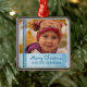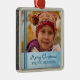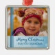 Personalizable del ornamento de la abuela de las Felices Navidad con su propia foto de familia en copos de nieve y modelo festivos azules claros elegantes de las rayas. Un regalo elegante del navidad para la abuela estas vacaciones.