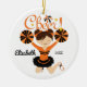 Naranja y ornamento lindo de la animadora del pelo negro de la alegría del negro. Fácil personalizar con su nombre y fecha. Visite nuestra tienda para ver este ornamento en una gran variedad de colores de la escuela y de colores del pelo