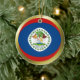 Ambos lados de este ornamento ofrecen la bandera de Belice morphed en un círculo con un borde de oro. Decoración beliceña simple para su hogar.