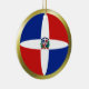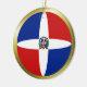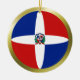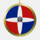 Ambos lados de este ornamento ofrecen la bandera de la República Dominicana morphed en un círculo con un borde de oro. Decoración simple de la República Dominicana para su hogar.