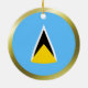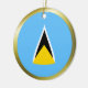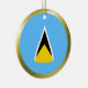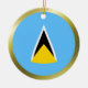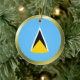 Ambos lados de este ornamento ofrecen la bandera de la Santa Lucía morphed en un círculo con un borde de oro. Decoración santalucense simple para su hogar.