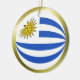 Ambos lados de este ornamento ofrecen la bandera de Uruguay morphed en un círculo con un borde de oro. Decoración uruguaya simple para su hogar.
