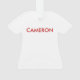 Este ornamento formado camiseta representa el tartán de la manguera de Cameron en el frente y el nombre, Cameron, en rojo en la parte posterior.