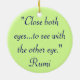 Imagen de Rumi en un lado con la cita "cercana ambos ojos… para ver con el otro el ojo." en el otro lado