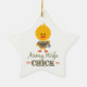 Un polluelo amarillo lindo lleva una camiseta del camuflaje con un corazón marrón del applique con la palabra orgullosa en ella, y ella sostiene un par de placas de identificación de la esposa del ejército en las camisetas del polluelo de la esposa del ejército, las camisetas, los pegatinas, los totes y más ropa, accesorios y apoya el engranaje de las tropas. Haga clic en el siguiente enlace para ver todo nuestro © original Chrissy H. Studios, LLC de Chrissy H. Artwork. Todos los derechos reservados.