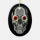 Calavera plateada de aspecto malvado con ojos rojos fantasía adorno personalizado. Haga clic en el Personalizar para añadir un mensaje personal en la parte posterior. Si necesitas ayuda o tienes alguna solicitud, por favor contacta conmigo. También puedo añadir la imagen a la parte posterior del adorno. Esta imagen está disponible en muchos productos de mi galería.