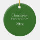 Este ornamento de cerámica redondo de la foto tiene un tren que Papá Noel esté conduciendo, tirando de dos coches con el reno y los presentes. A la izquierda, hay un árbol con uces par de regalos abajo. Escrito en rojo, el primer navidad del bebé está en la parte inferior. En el top, usted puede añadir su propia fotografía. En la parte posterior, usted puede personalizar fácilmente el nombre del niño y del año.
