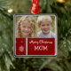 Personalizable del ornamento de la mamá de las Felices Navidad con su propia foto de familia en copos de nieve elegantes y modelo festivos rojos y blancos de las rayas. Un regalo elegante del navidad para la mamá estas vacaciones.