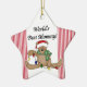 ¡El ornamento adaptable del día de fiesta del recuerdo del diseño del oso de peluche de la mejor mamá del mundo ofrece un oso de peluche con luces del día de fiesta y un casquillo de media y un área en la parte de atrás del ornamento donde usted puede personalizarla fácilmente con el nombre y el año o la fecha o el otro texto!