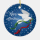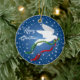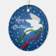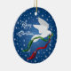 Personaliza y alegra tu árbol de Navidad con este hermoso "uno de los amigos" de la paloma blanca de la Navidad. Cuenta con una paloma blanca de Navidades que vuela entre las estrellas blancas llevando una rama de olivo con cintas rojas y verdes... Deseamos a todos..."¡Feliz Navidad! Este es un diseño de arte original del artista Kerry Miller".