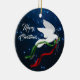 Personaliza y alegra tu árbol de Navidad con este hermoso "uno de los amigos" de la paloma blanca de la Navidad. Cuenta con una paloma blanca de Navidades que vuela entre las estrellas de los Navidades blancos llevando una rama de olivo con los lazos rojos y verdes, deseando a todos ..."¡Feliz Navidad! Este es un diseño de arte original del artista Kerry Miller".