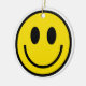 Hay una cara amarilla grande a ambos lados de este ornamento,