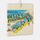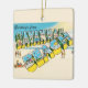 Una divertida y colorida postal retro, vintage postal para Savannah Beach, Georgia reutilizada sobre un adorno de cerámica.