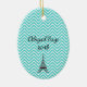 Bonito Tres Moda Personalizada Glitzy Patrón Chevron Glitzy Rosa, Azul y Negro Dulce 16 Ornamento de árbol de Navidad Torre Eiffel de París.