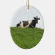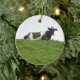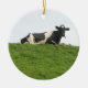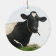 Ornamento de la vaca. ¡Una vaca de Holstein del Frisian que se relaja y que mira con una cara curiosa y divertida usted! ¡Este ornamento de la vaca es completamente adaptable! ¡Añada y personalice con sus textos e imágenes! ¡Un gran regalo de la vaca para el amante del colector de los artículos de la vaca y del animal del campo!