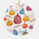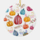 Celebraciones del otoño calabazas rústicas ornamento de dibujo acuarela con fondo de color personalizado.