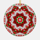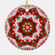 Un caleidoscopio rojo, blanco y verde del arte del fractal adorna este ornamento del árbol de navidad.
