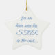 Ornamento bíblico cristiano cita a Mateo 2:2, donde los sabios anuncian que han visto la estrella en el este.