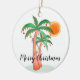 Este ornamento navideño cuenta con palmeras decoradas con luces y azulejos. Porque creamos nuestra propia obra de arte no encontrarás esta imagen exacta de otros diseñadores. Acuarela original © Michele Davies.