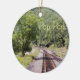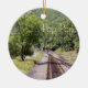 Ornamento del árbol de navidad que ofrece pistas de ferrocarril a través de las montañas
