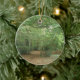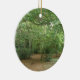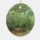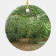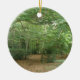 Este adorno de estilo bonito presenta una fotografía tomada en un bosque caducifolio británico. Los magníficos árboles verdes se extienden hasta el horizonte. La fotografía se tomó en un pequeño taladro del bosque para asegurar suficiente luz para capturar las hojas verdes de los árboles y el suelo del bosque cubierto de hojarasca.