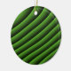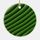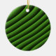 Este ornamento presenta una serie de líneas verdes onduladas, creadas digitalmente, que parecen moverse como olas y que recuerdan una calidad hipnótica.