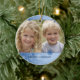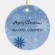 Las Felices Navidad abuela y abuelo adornan personalizable con su propia foto de familia en modelo festivo azul y blanco elegante de los copos de nieve. Un regalo elegante del navidad para los abuelos estas vacaciones.