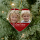 Las Felices Navidad abuela y abuelo adornan personalizable con su propia foto de familia en copos de nieve elegantes y modelo festivos rojos y blancos de las rayas. Un regalo elegante del navidad para los abuelos estas vacaciones.