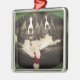 Un cuadrado enmarcó el ornamento del navidad, ofreciendo una fotografía original del hígado dos y de los perros de aguas de saltador inglés blancos que se sentaban así como un gorra de Santa.