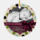 Este hermoso diseño de adorno de fotos personalizado de vacaciones de The Spoted Olive™ presenta un fondo elegante y ondulado con un marco de foto de un punto polka lindo, cinta y las palabras "Feliz Navidad". Personaliza con tu foto, año, nombres u otro texto especial. Copyright 2010 | El olivo visto™ | Todos los derechos reservados The Spoted Olive™ es tu fuente en línea para diseños divertidos, bonitos y geniales en tarjetas de negocios de moda, artículos de papel de moda y regalos únicos.